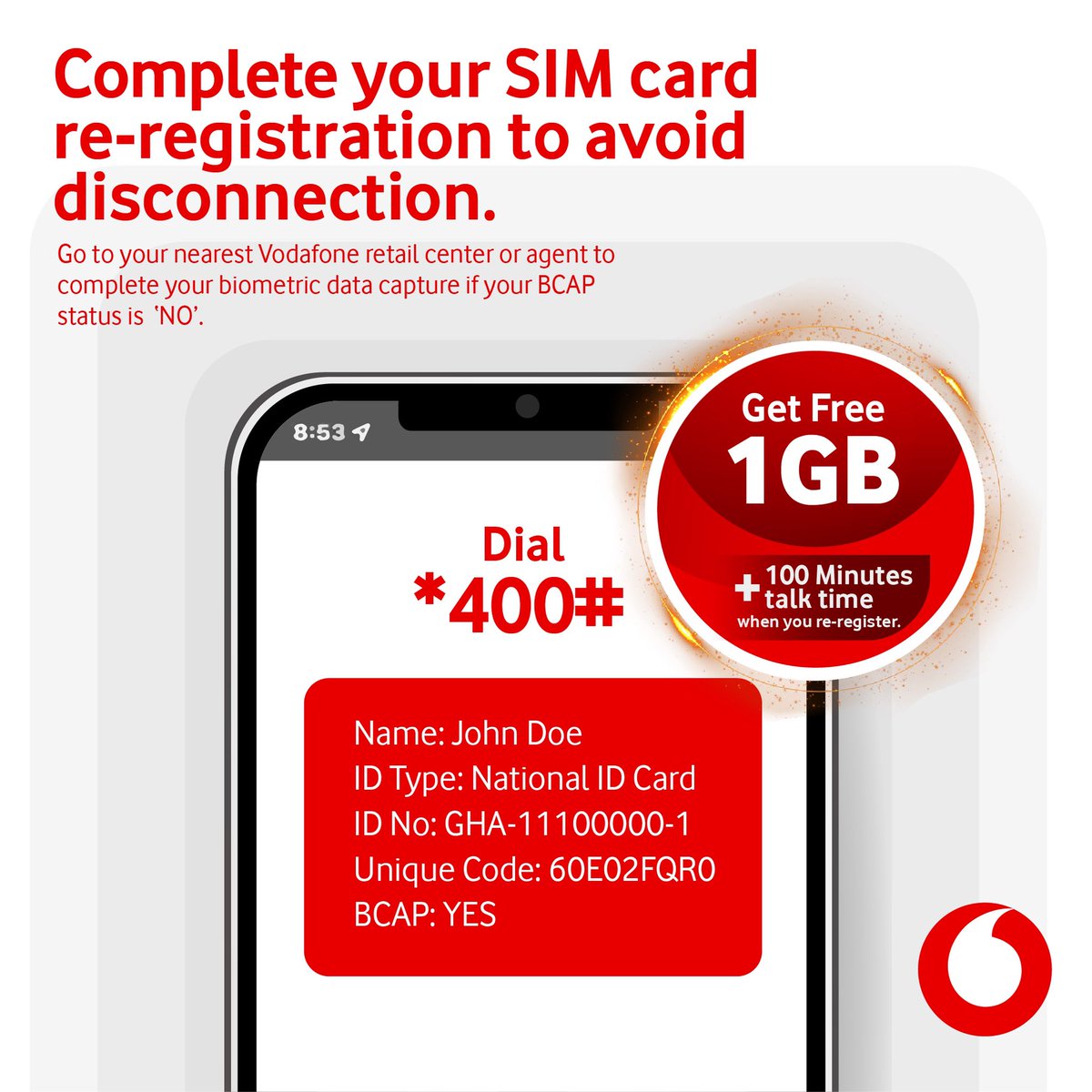 Vodafone Ghana After The 31st Of July All Unregistered Sim Cards Will Not Be Able To Make Calls Or Use The Internet Re Register Your Sim Card Now To Avoid Being Disconnected